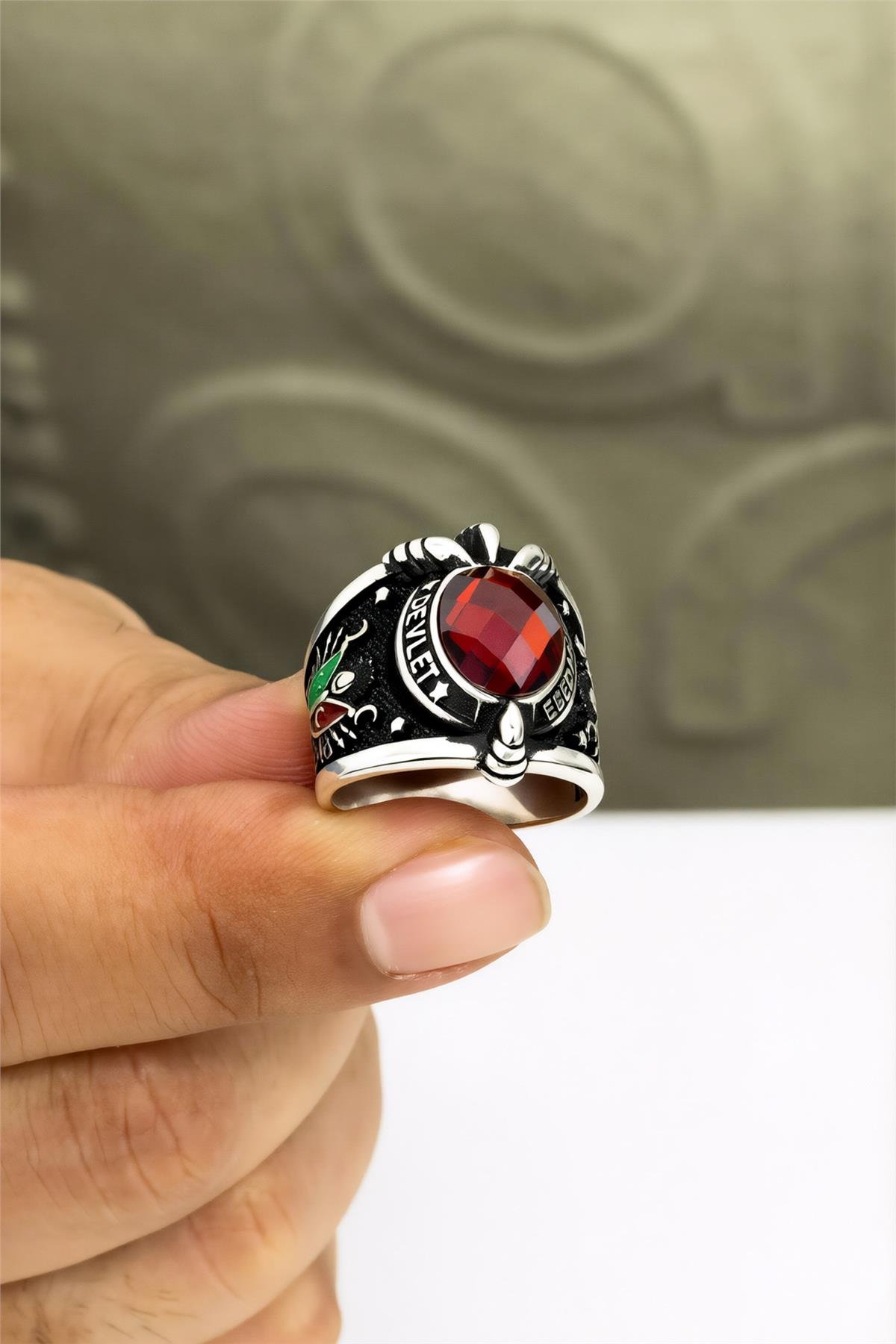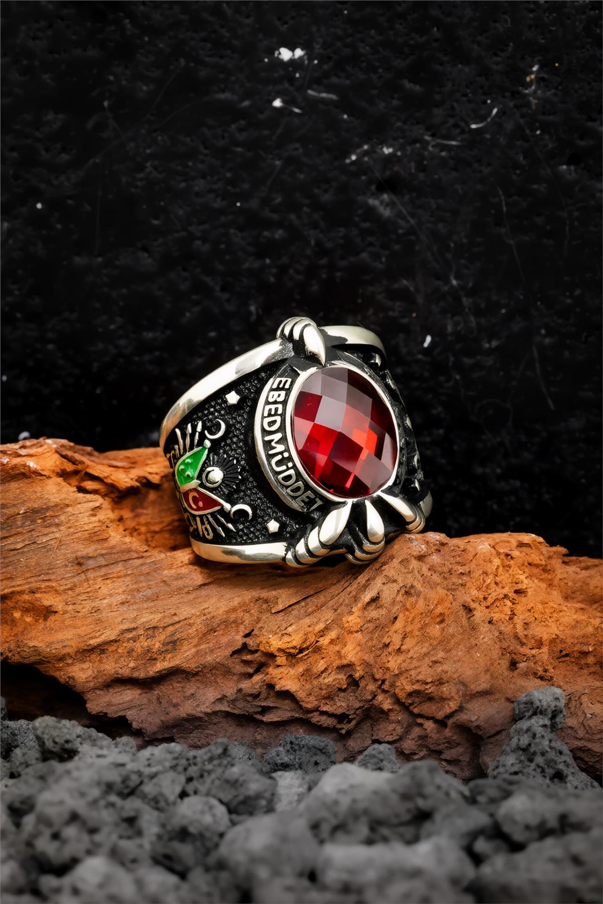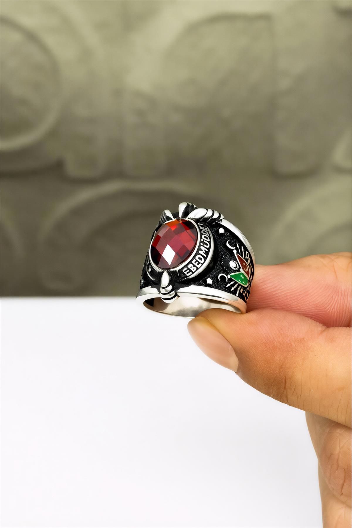 925 Ayar Devleti Ebed Müddet Yazılı Mineli Gümüş Erkek Yüzük