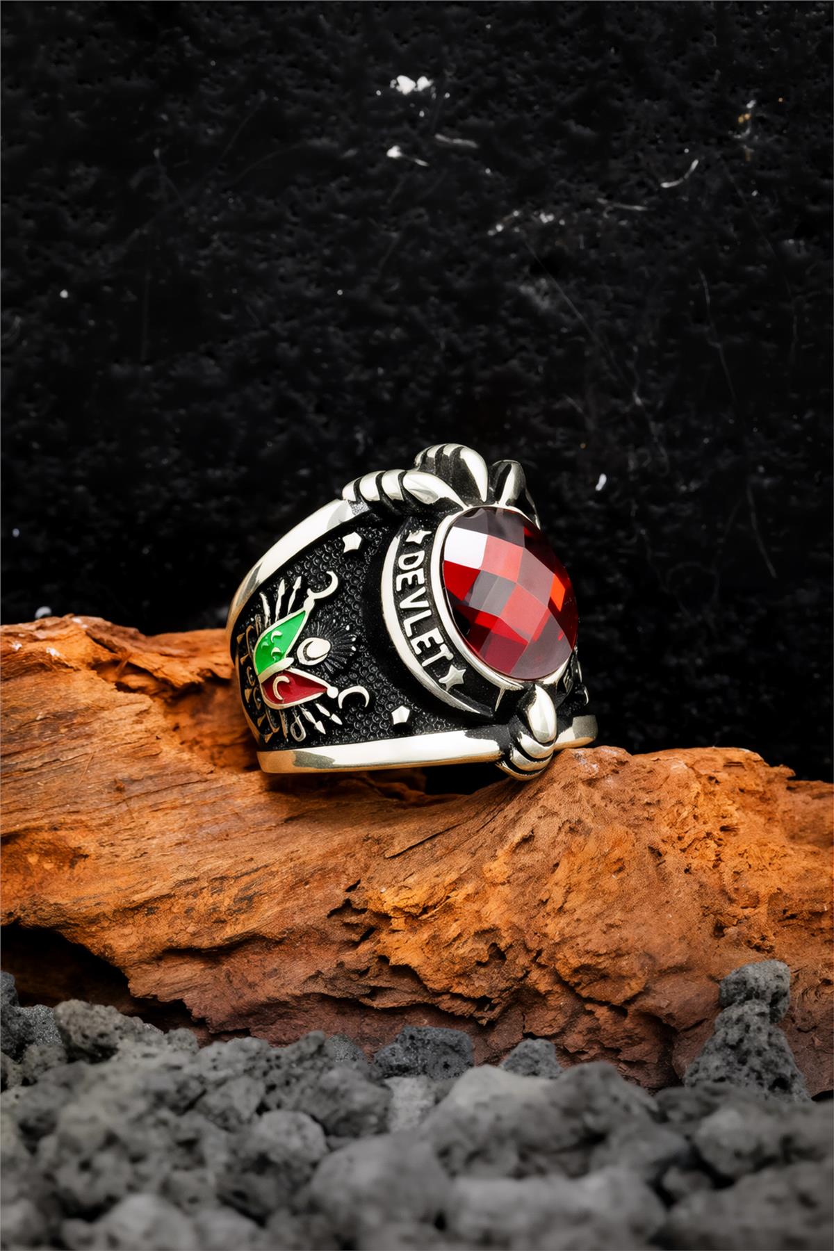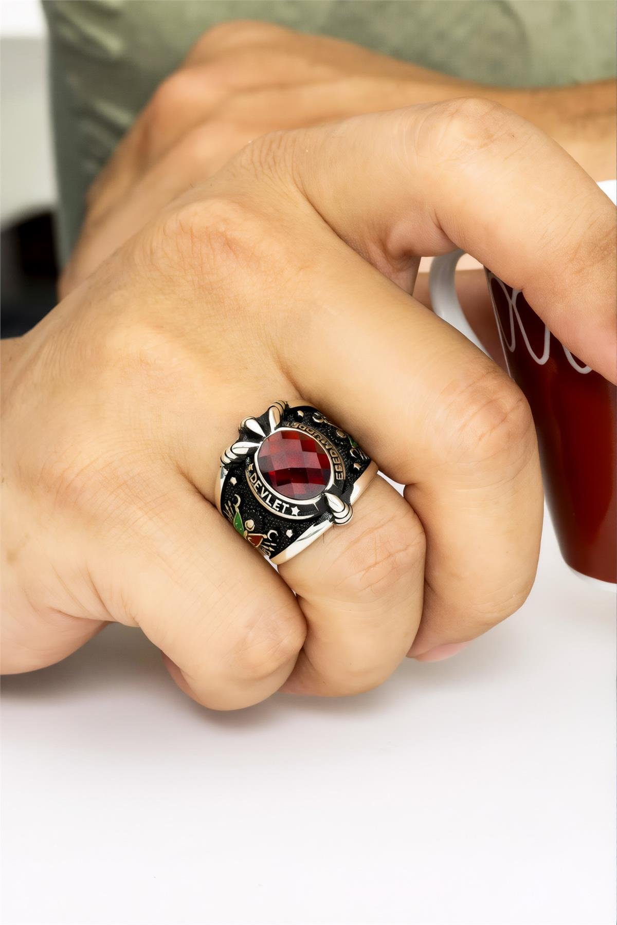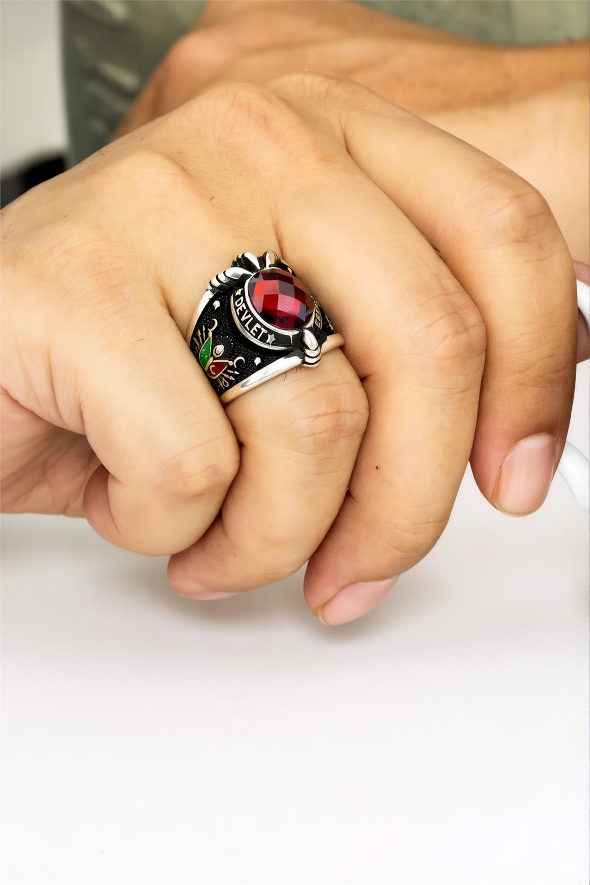 925 Ayar Devleti Ebed Müddet Yazılı Mineli Gümüş Erkek Yüzük