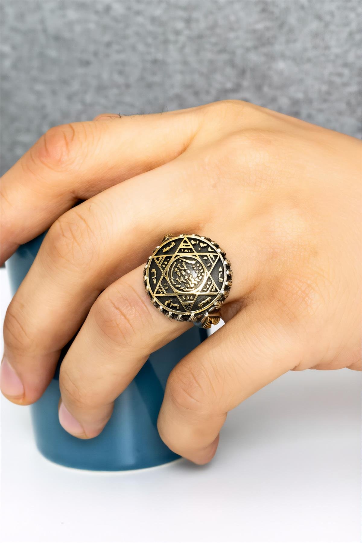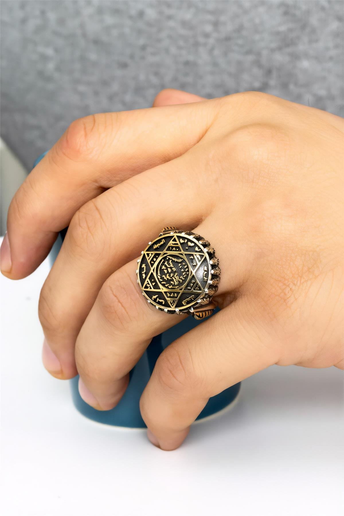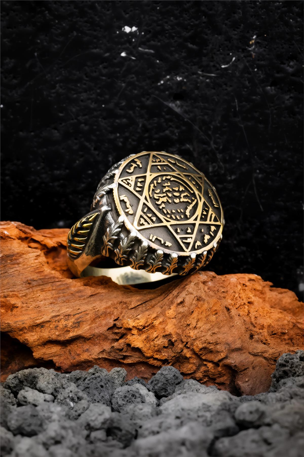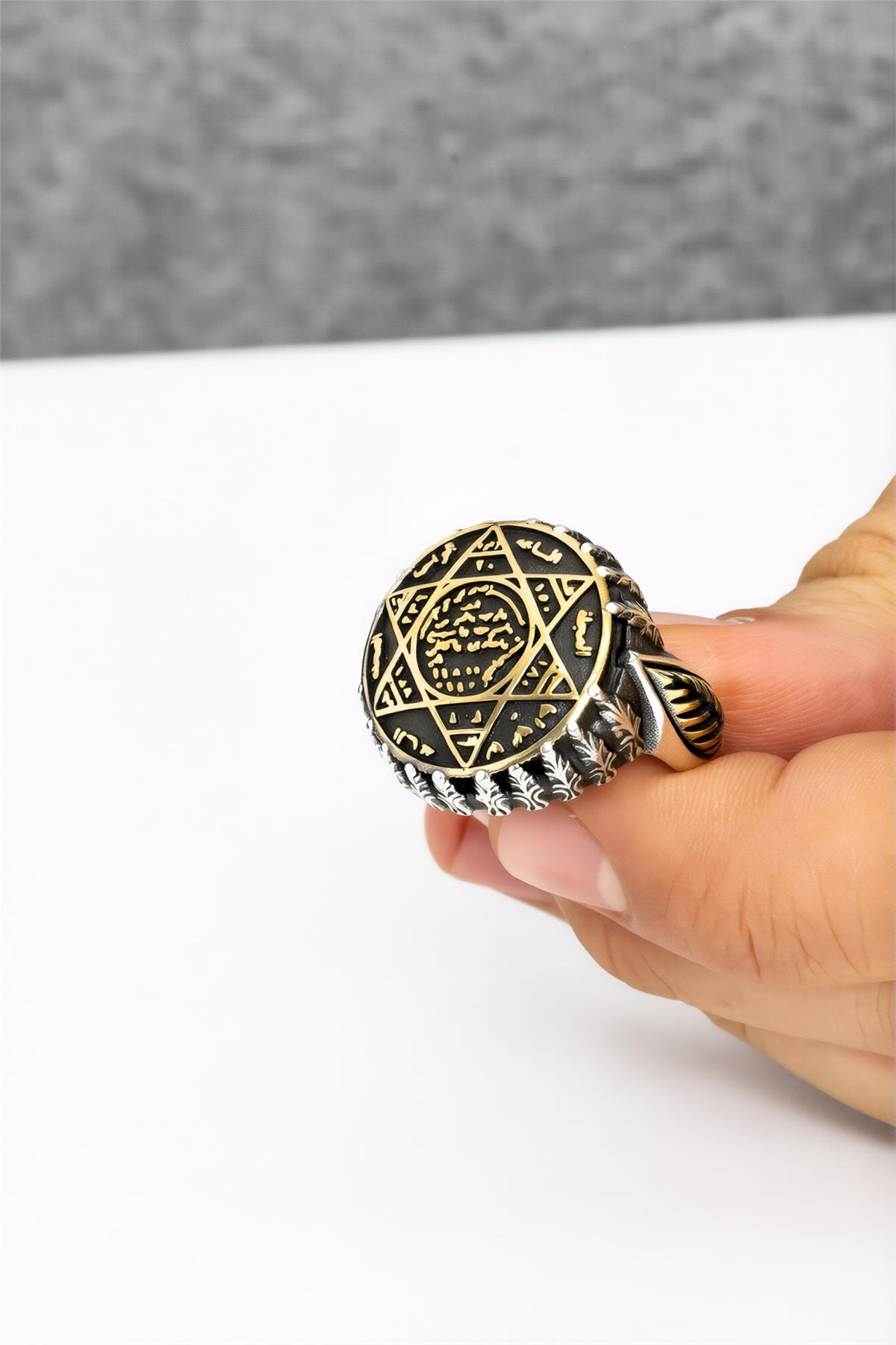 925 Ayar Gümüş Hz. Süleyman Mührü Motifli Erkek Yüzük