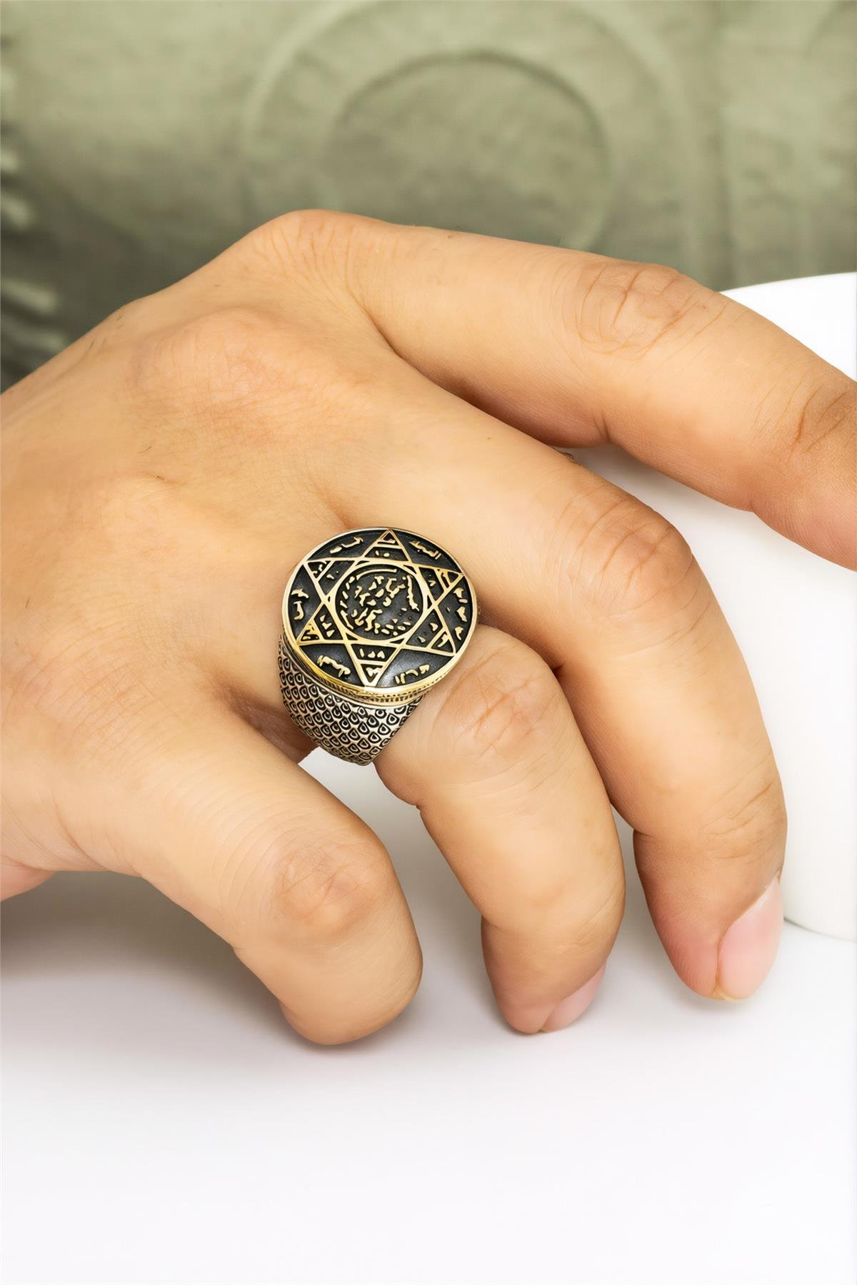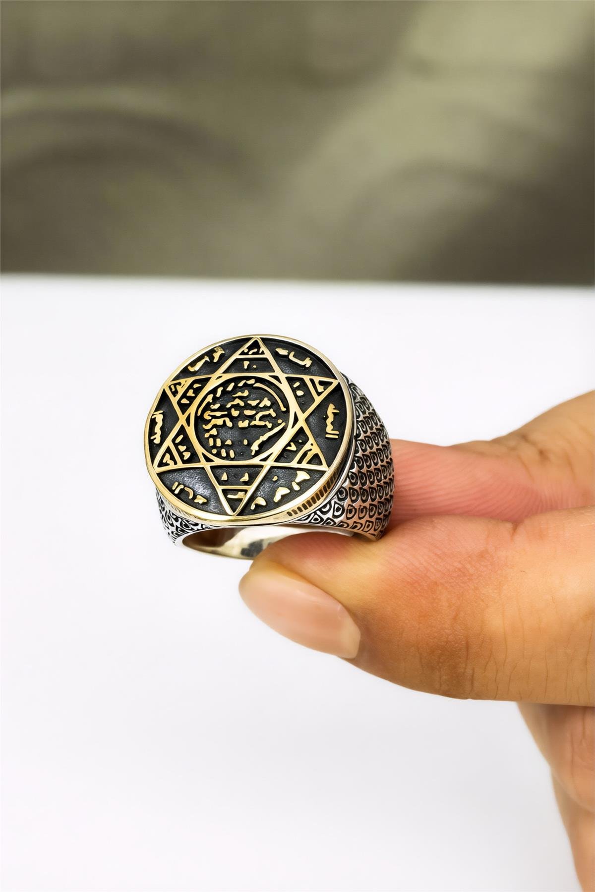 Karartmalı Hz. Süleyman Mührü 925 Ayar Gümüş Erkek Yüzük