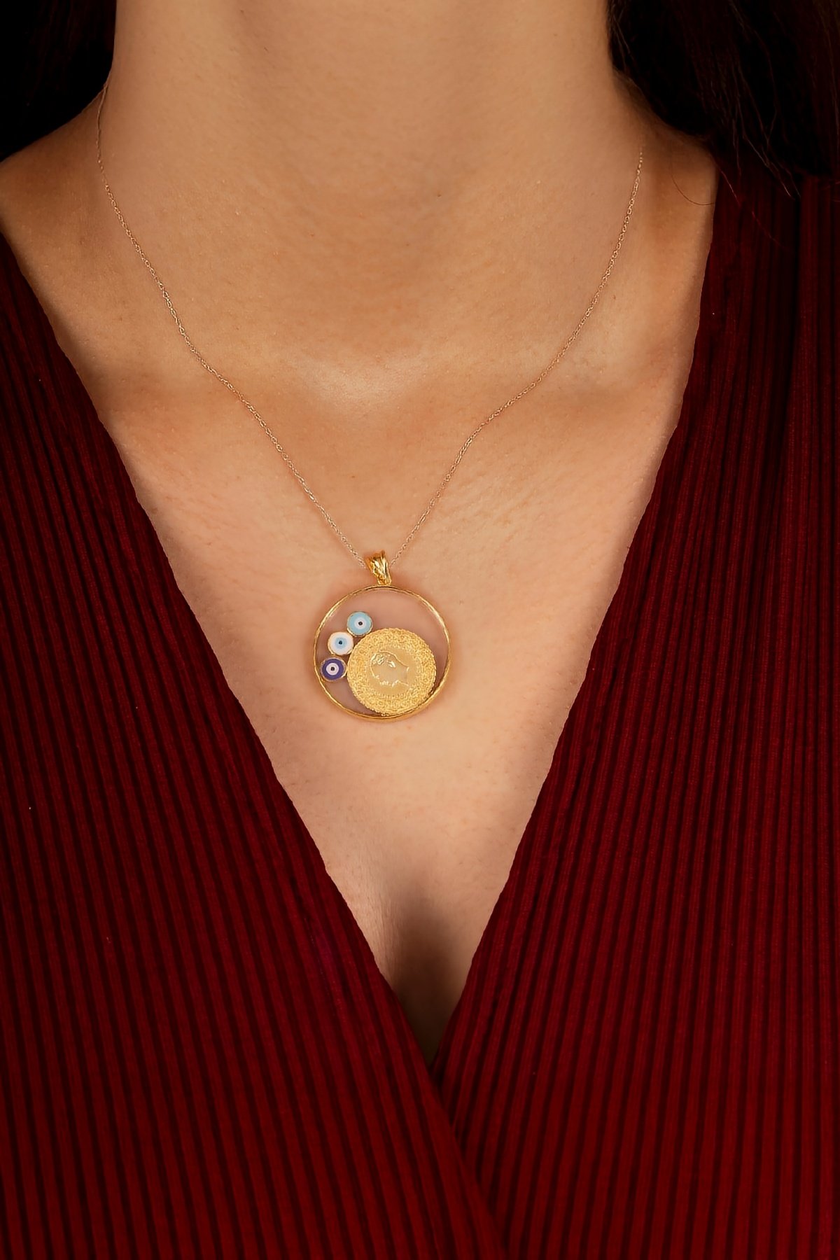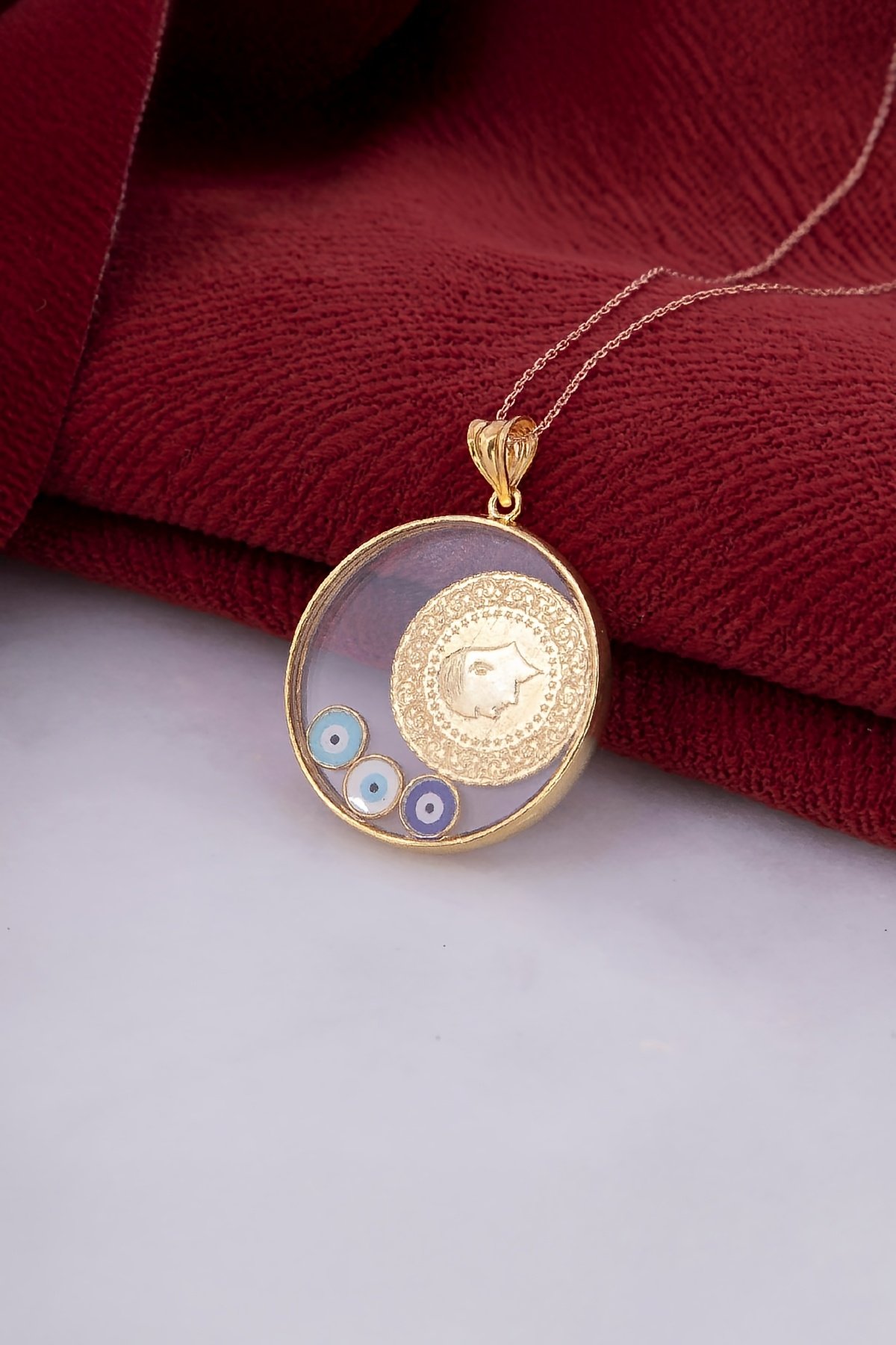 925 Ayar Gümüş Altın Kaplama Çeyrekli Bayan Kolye